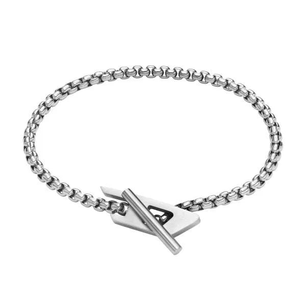 Diesel 鏈條手鍊採用不銹鋼材質,搭配品牌D扣環設計,是最經典不敗的時尚單品。
