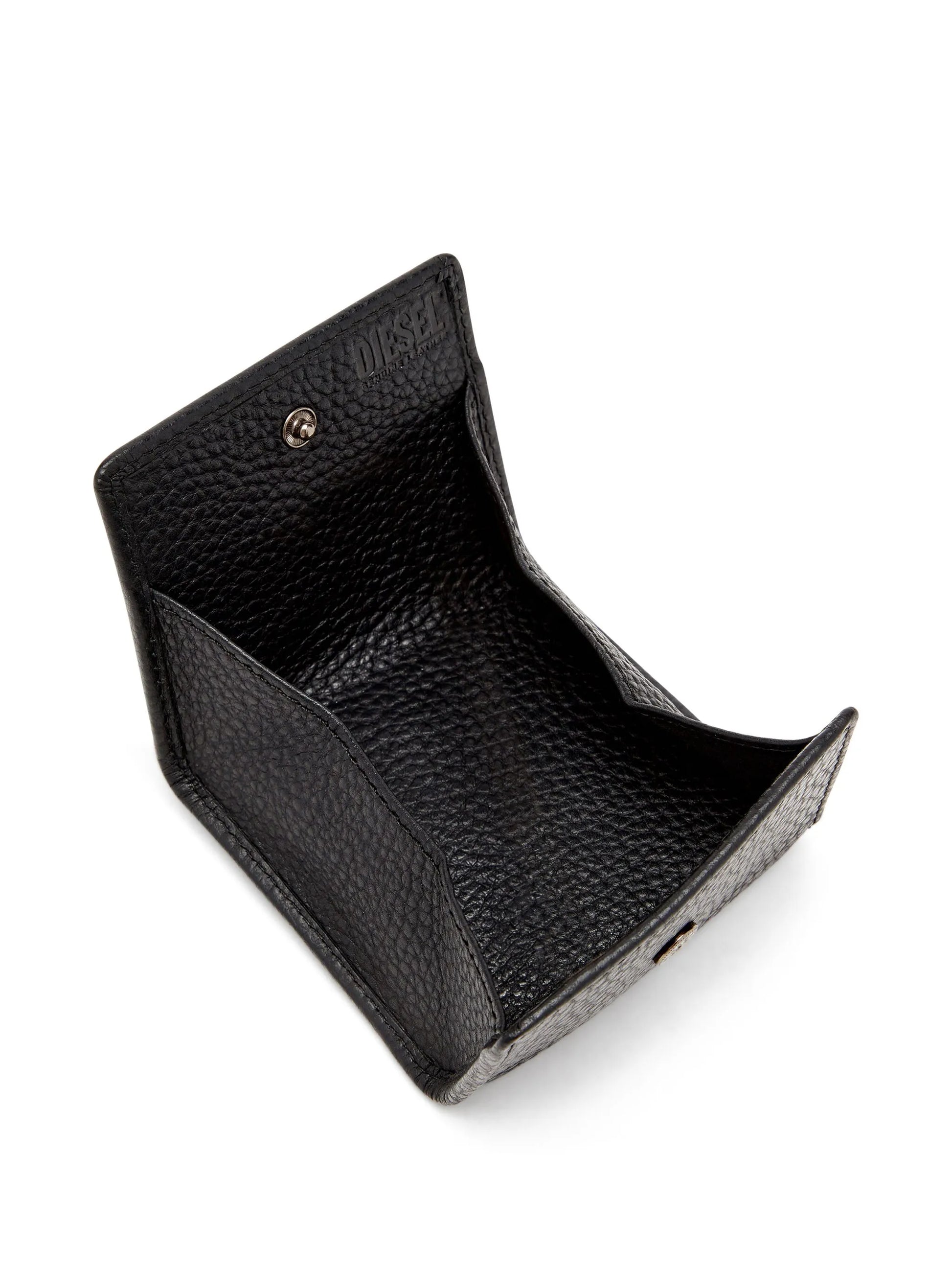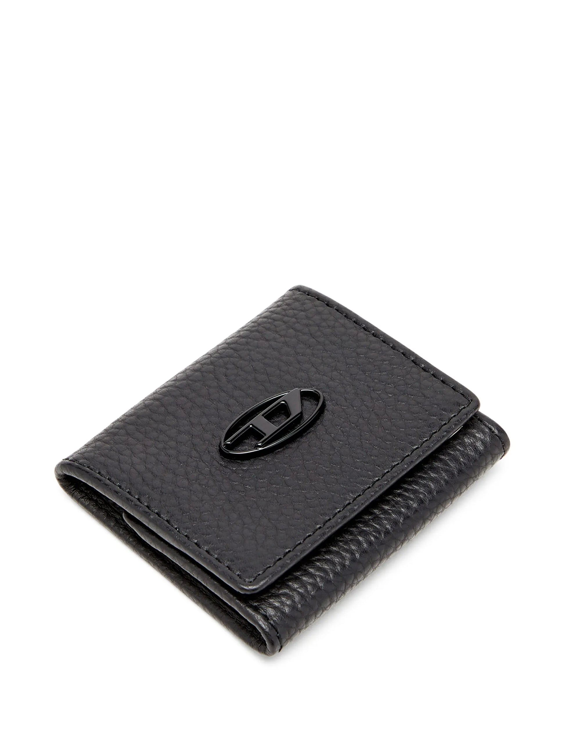 Diesel Hissu Evo 零錢包,小牛皮特殊卵石壓紋,搭配同色系橢圓形 D 字標誌牌,低調小巧又兼具實用性。